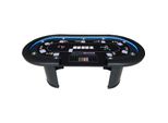 Die gepolsterten Armauflagen aus Kunstleder garantieren maximalen Komfort während des Spiels. Darüber hinaus verfügt der Tisch über 9 elegante Edelstahl-Getränkehalter sowie ein praktisches Chiptray, sodass du immer bestens ausgestattet bist.